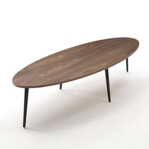 The Soho Oval Coffee Table is a sleek and functional coffee and occasional table. The oval table top rests on four conical shaped metal legs, which gives the table a sense of lightness. The Soho is only available with metal legs in black and an MDF top in natural oak veneer finish.