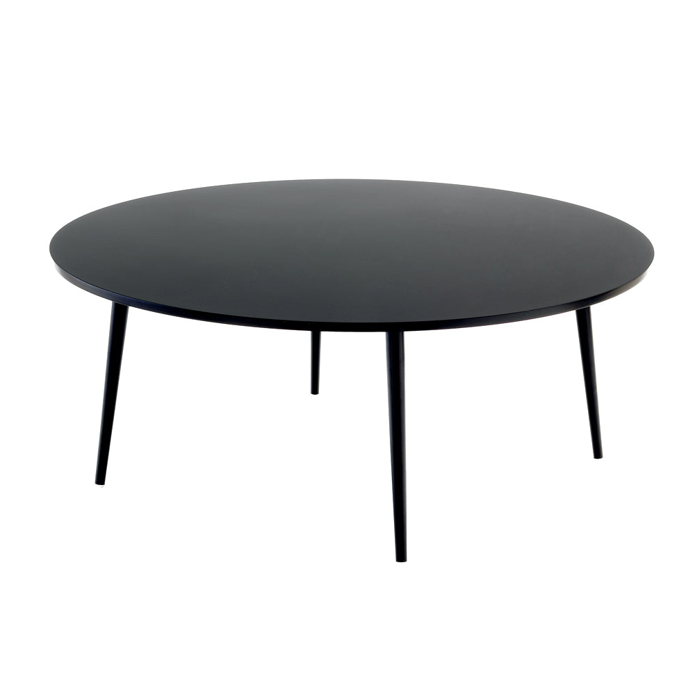 The Soho Round Coffee Table - Large is a sleek and functional coffee and occasional table. The round table top rests on four conical shaped metal legs, which gives the table a sense of lightness. The Soho is only available with metal legs in black and an MDF top in black lacquered finish.