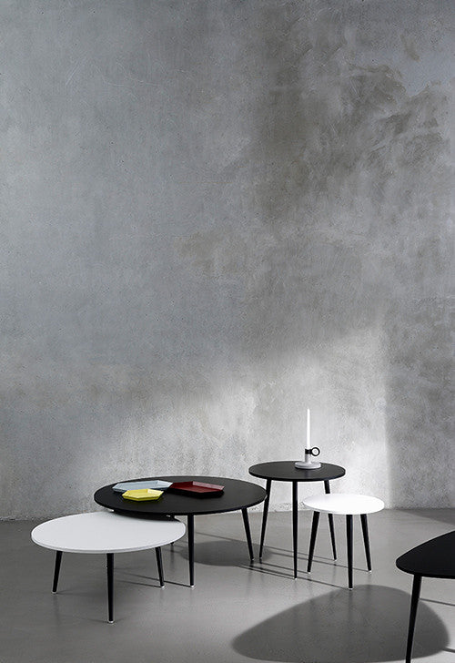 The Soho Round Pedestal Table - Large is a sleek and functional coffee, side and occasional table. The round table top rests on three conical shaped metal legs, which gives the table a sense of lightness. The Soho is available with metal legs in black lacquered, and an MDF top in black or white lacquered finishes.