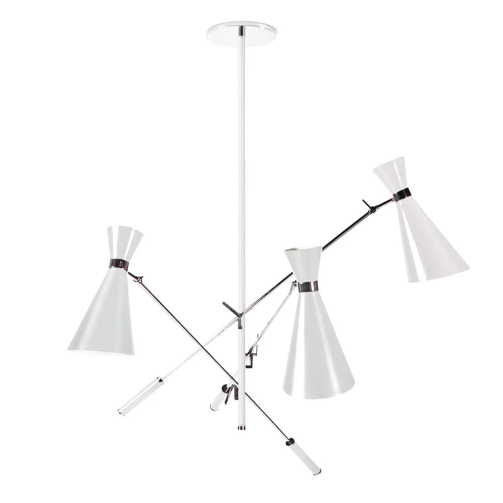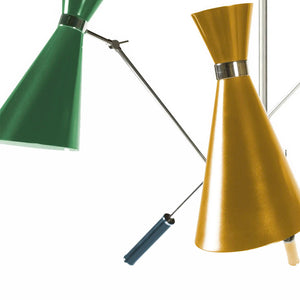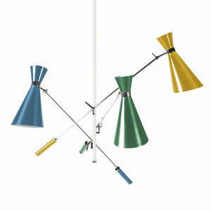 The Stanley Suspension Light is inspired by some of the most iconic lighting designs of the 1960s. The Stanley is handmade in brass and aluminium, lacquered. It has three movable arms and three counterweights in steel. All these features can be customised in any RAL colour requested.