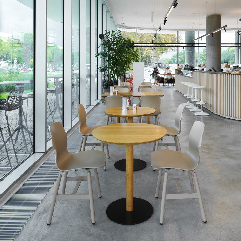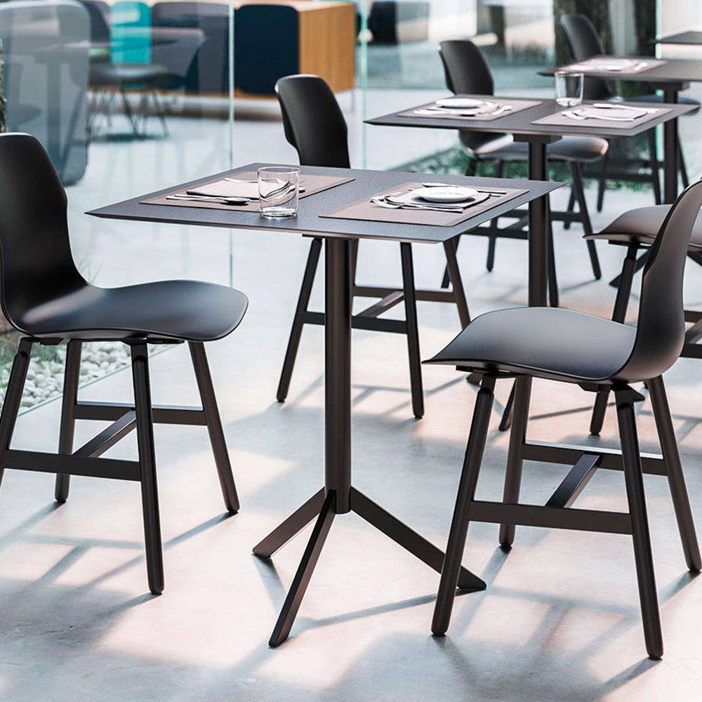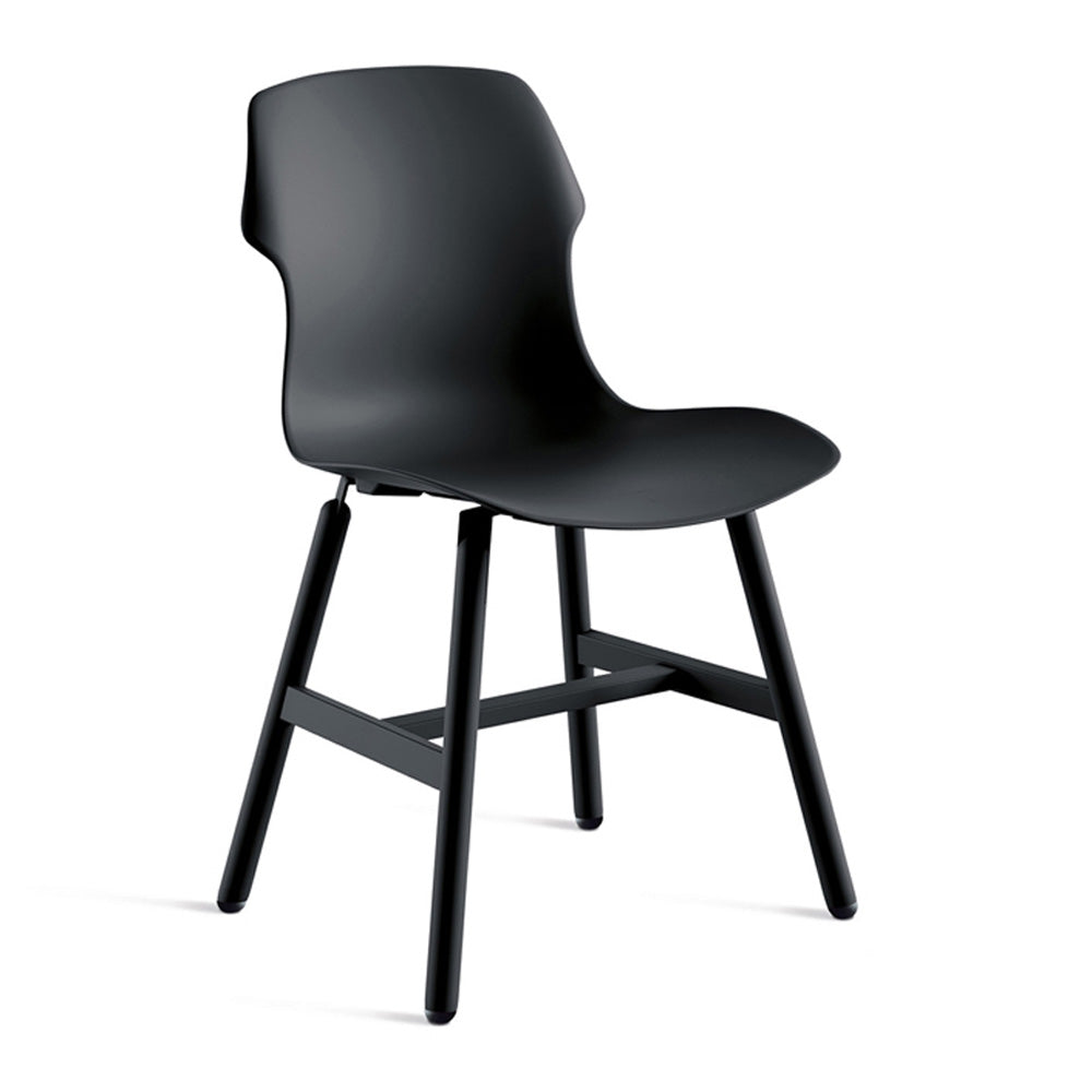The Stereo chair comes in multiple versions to suit different functions but they all share the same polypropylene seat with its distinctive sculpted shape, which looks contemporary and elegant as well as offering a high level of comfort. This version of the Stereo chair comes with metal legs with cross supports, all painted in the same colour as the seat. As an option, the seat can be upholstered in fabric or leather. Please enquire for more details.