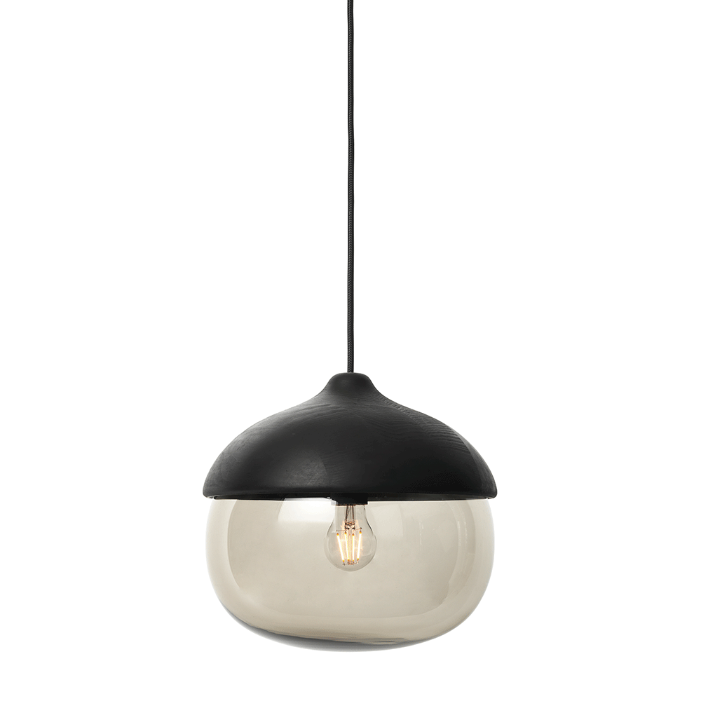 "Terho" means acorn in Finnish, the shape of which is reflected in the gentle curvaceous form of the pendant. The warmth and beauty of the natural linden wood combined with the smoked glass makes this light both contemporary and timeless. The wood is FSC certified from responsible European forestry and the glass is mouth-blown.