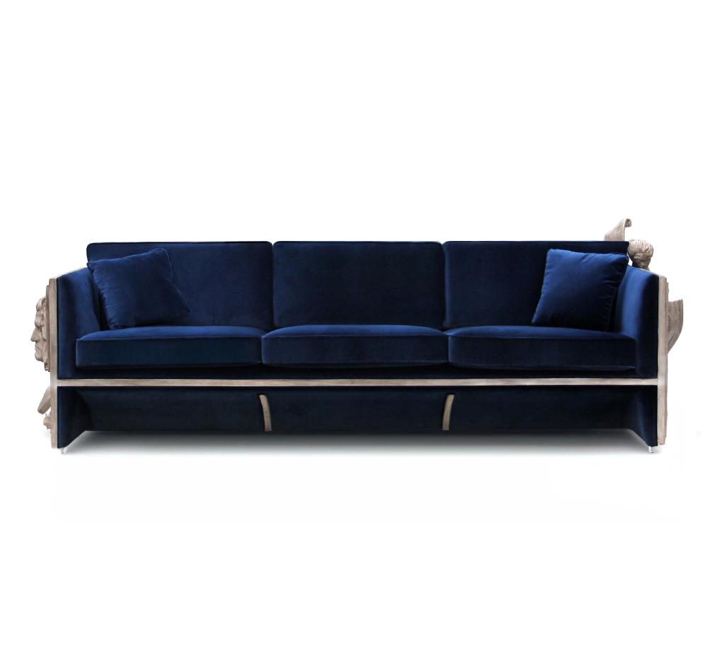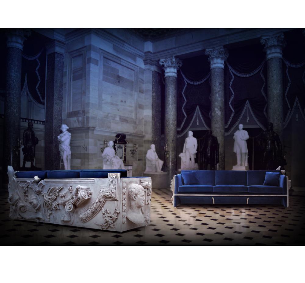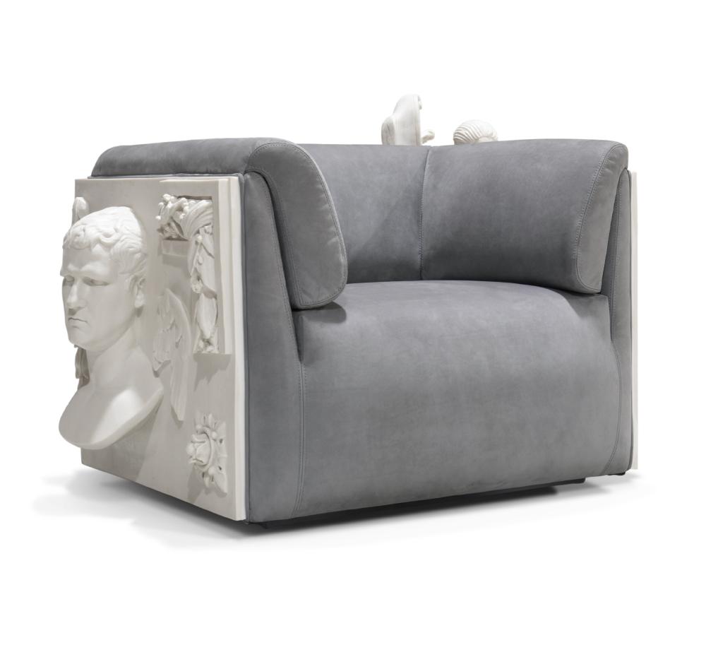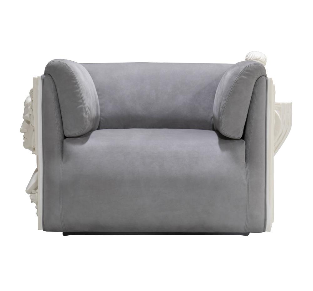 The Versailles Sofa and Armchair Collection is inspired by the luxuries of the French royal palace of Versailles. Its shell replicates the marvellous and opulent stuccos of this historical palace, fabulously encasing the rich cushions of the seat, sides and back, all completely removable.