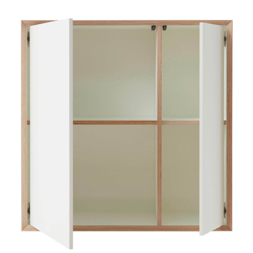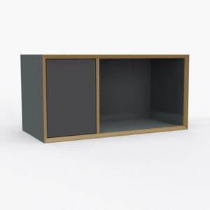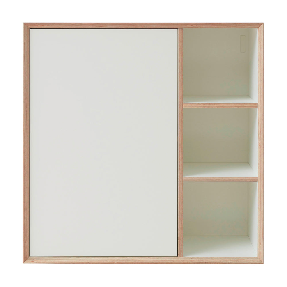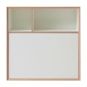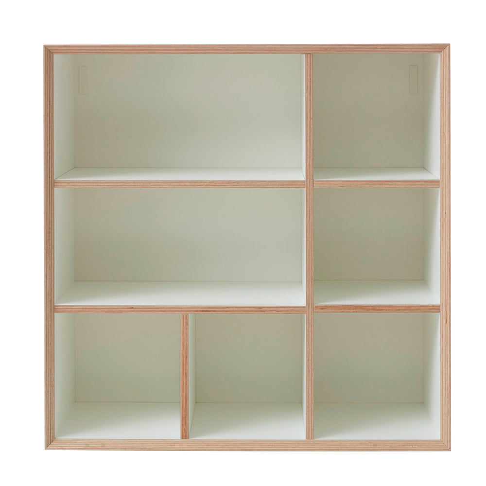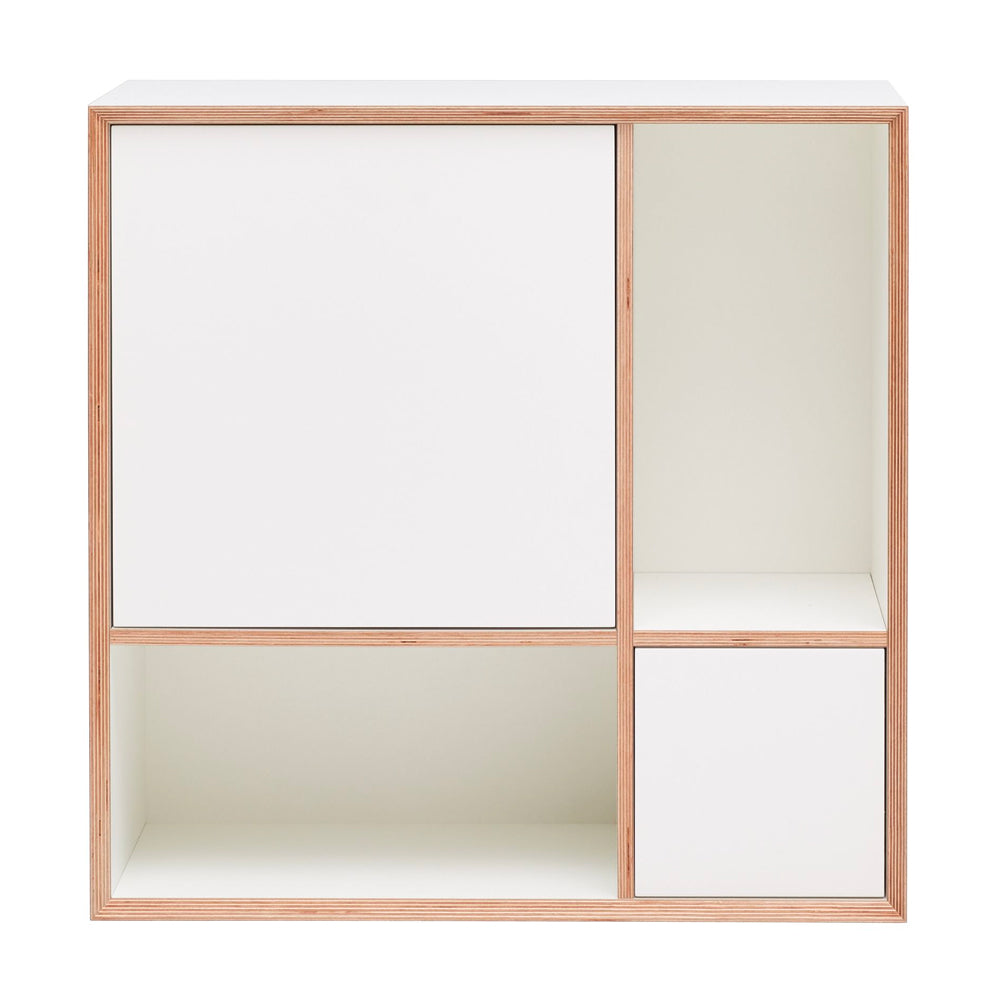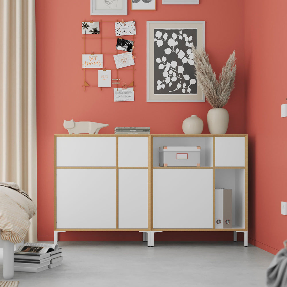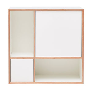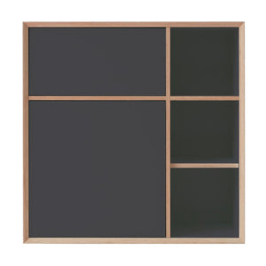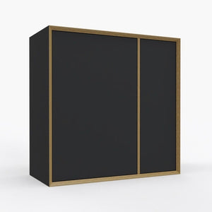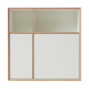 Vertiko is highly versatile shelving system based on a 74 cm x 74 cm box with 11 different versions, each with a different configuration of shelves and doors. The Vertiko shelves can be stacked on top of or placed alongside each other. They can be attached to the wall or be placed on the floor (with the addition of metal feet or a podium base), thus enabling countless different configurations to suit different needs, from an open book shelf to a bar cabinet.