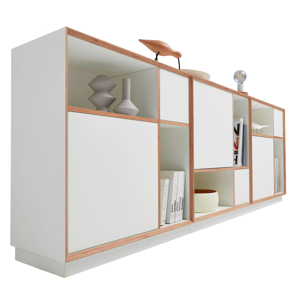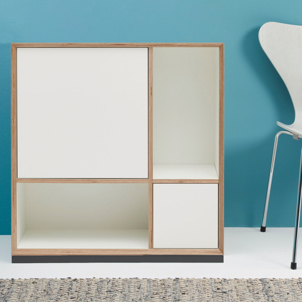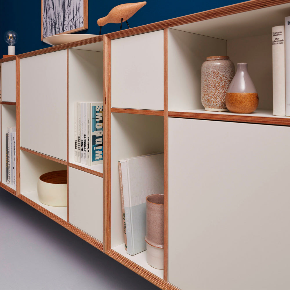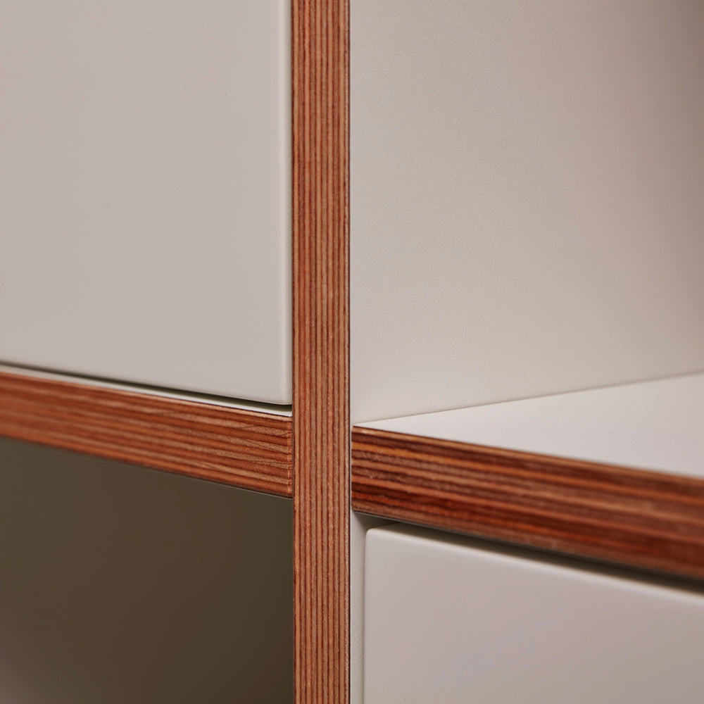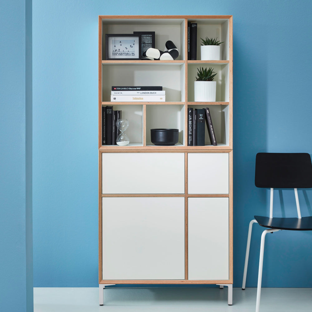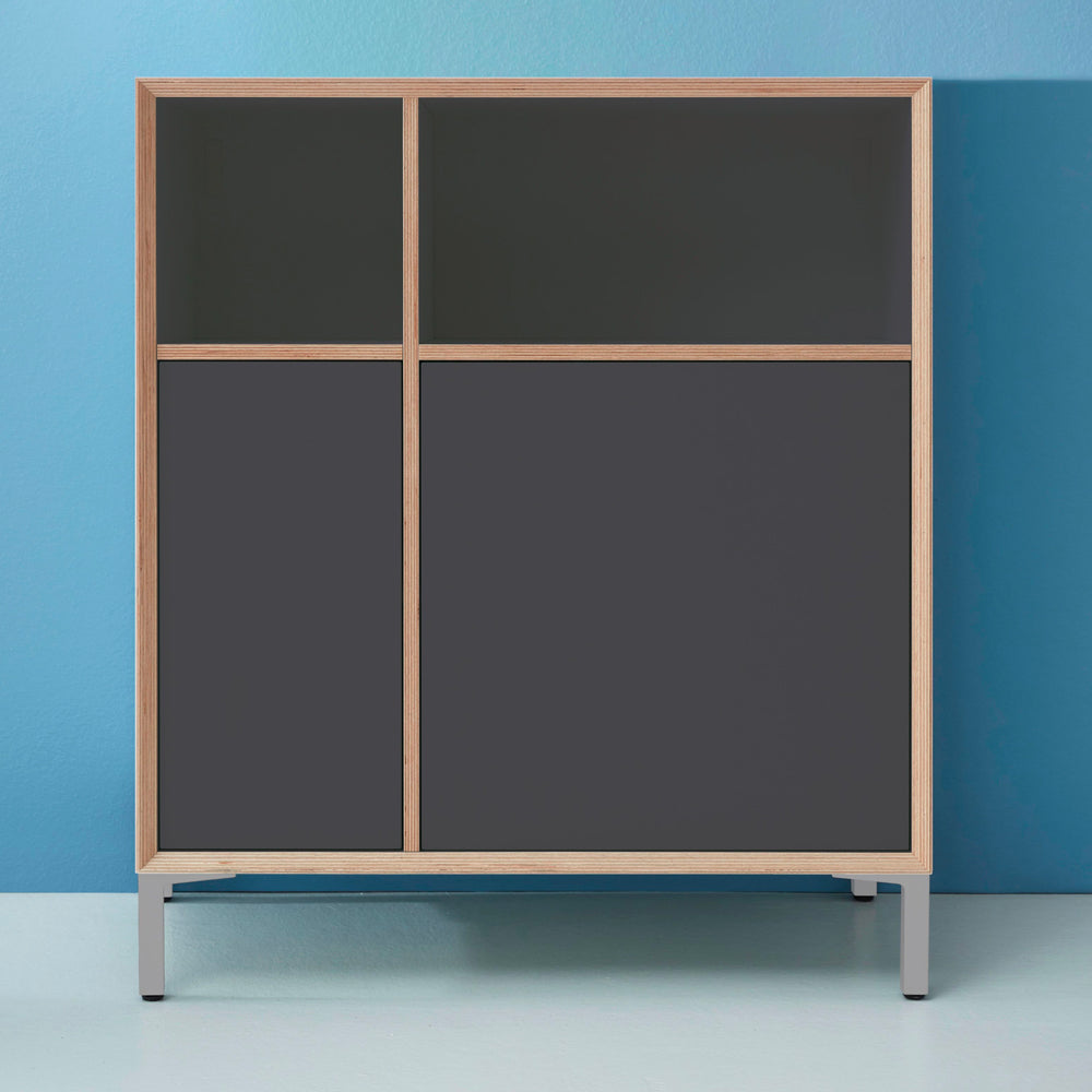 Shelving Modules and Base: 18 mm plywood with white CPL, anthracite CPL or black HPL laminate
