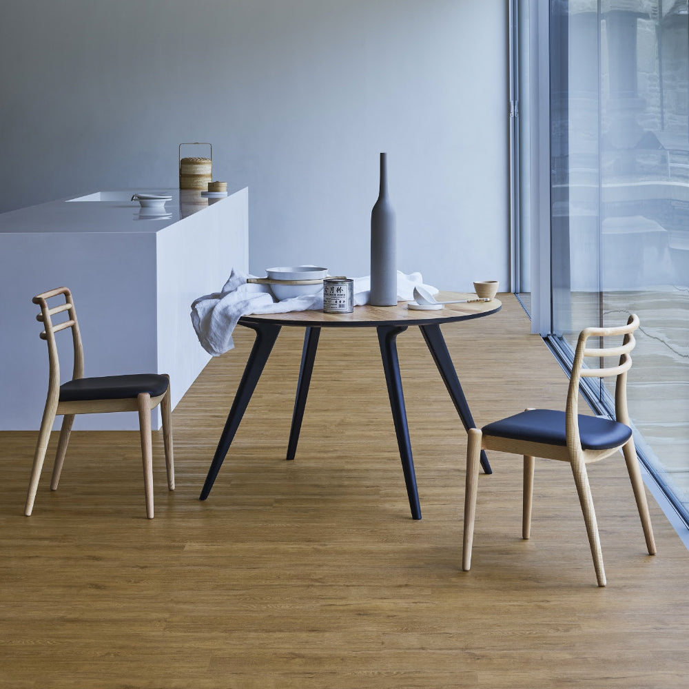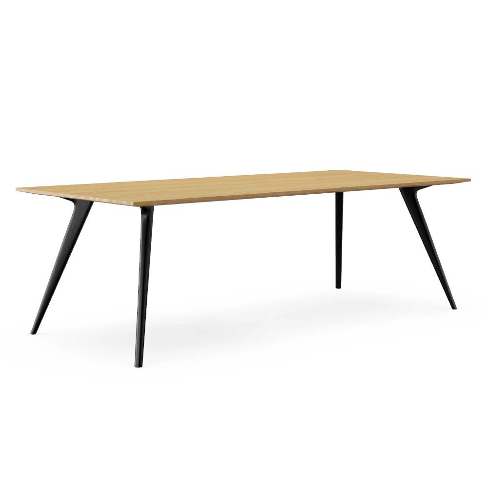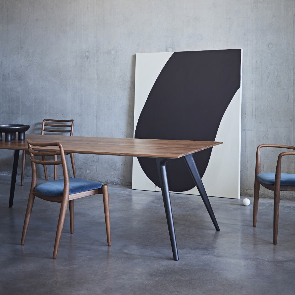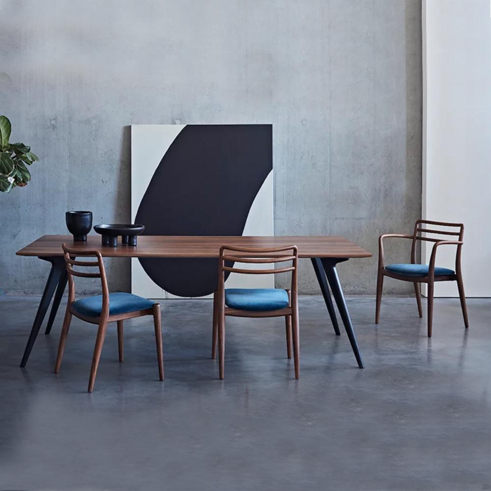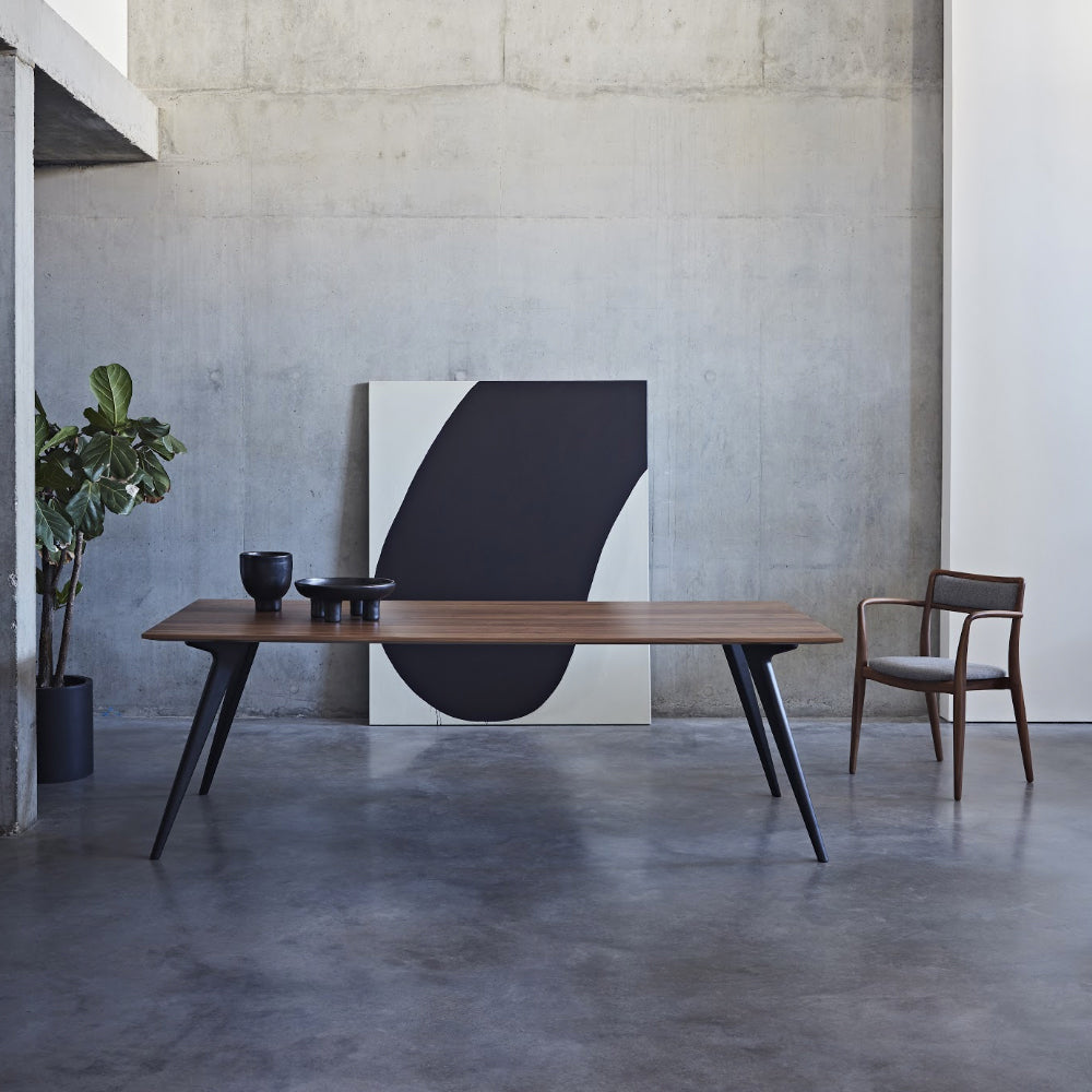 The Waldron Dining Table is sleek, contemporary dining table designed by Sean Dare for Dare Studio. The table features a solid timber top with black aluminium legs in a contemporary industrial style.