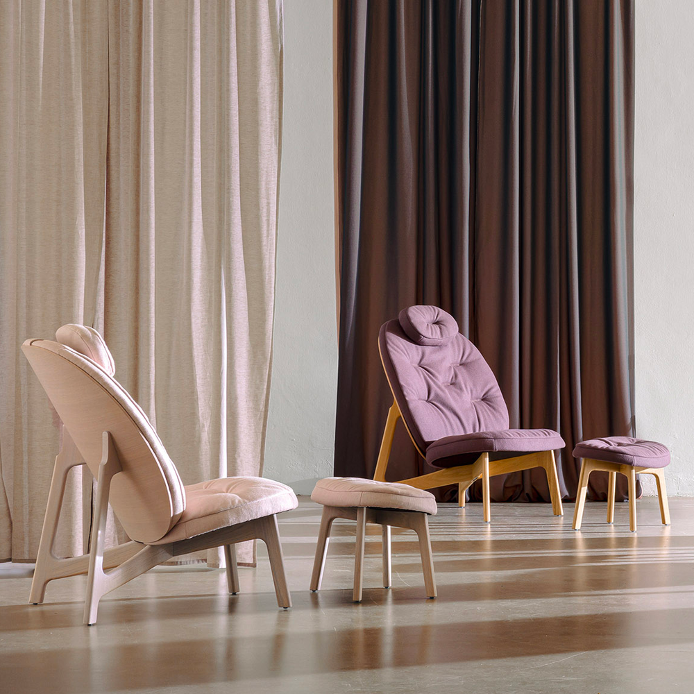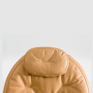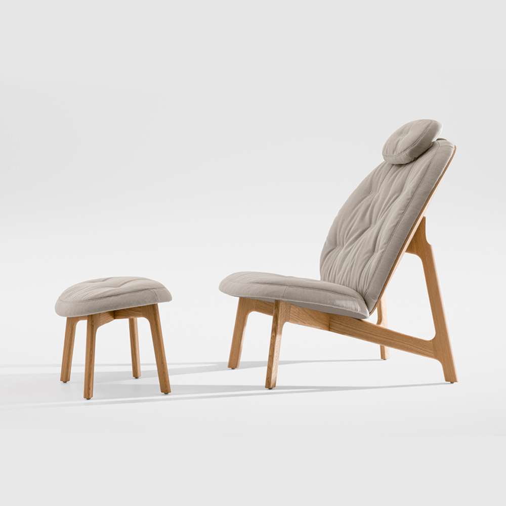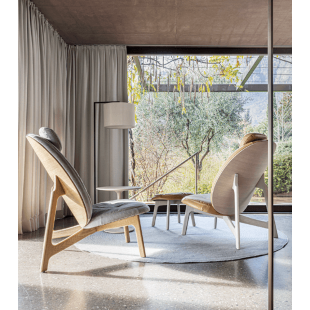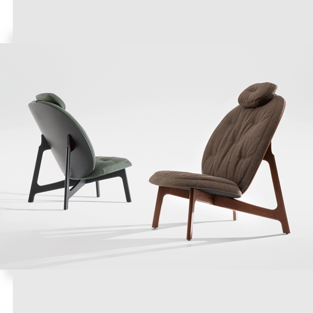 The distinctive shapes of the seat and backrest of the Zenso High Lounge Chair are inspired by the "Ensõ", a motif common in Japanese calligraphy which symbolises enlightenment and elegance. The seat and backrest are supported by a solid wood frame with hind legs that extend upwards to support the backrest, a bold design which gives the lounge chair a strong, imposing presence. The Zenso High Lounge Chair comes with an adjustable head cushion, which adds to the high level of comfort.