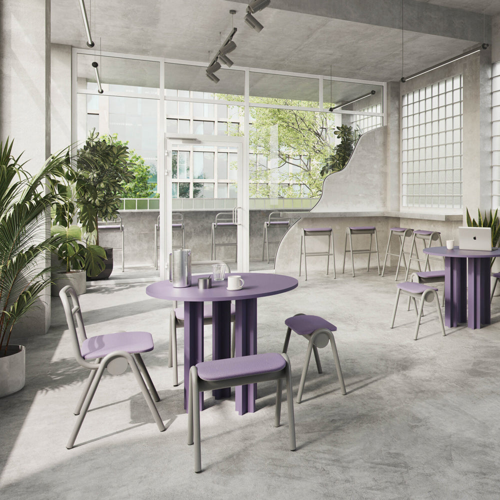 The Zum Chair is part of a collection of chairs and stools designed by Carlos Jiménez. At the heart of the Zum Collection lies a unique concept: the cylindrical structure which serves as the nexus where shape and design seamlessly meet functionality. The legs of each chair and stool converge within this cylindrical core, ensuring both structural soundness and contemporary look of this collection.
